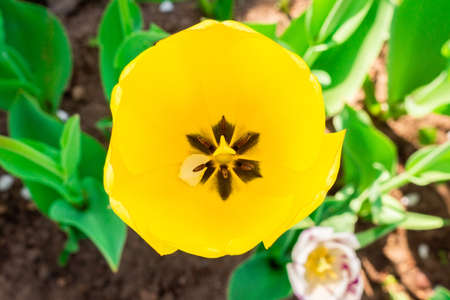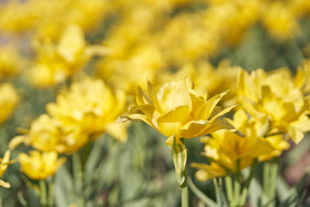 Bright colorful yellow Tulip blossoms in spring