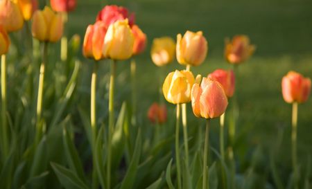 Orange tulips in nature, shallow focus