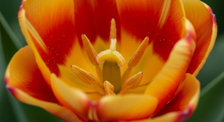Open bud of a Red tulp flower closeup, Selective focus. Gardening spring concept