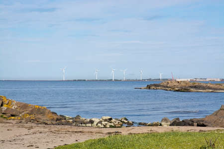 FALKENBERG, SWEDEN - JUNE 5, 2015: Wind power turbines and natural heath on June 5 in Falkenberg, Sweden.