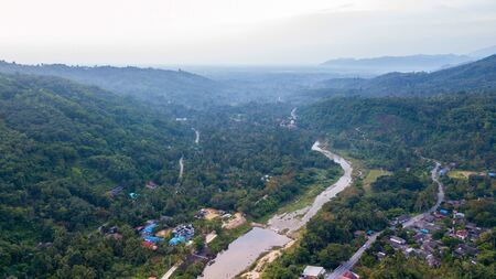 Aerial view landscape of Kiriwong village from drone, Lan Saka district, Nakhon Sri Thammarat. The best ozone location in Thailand