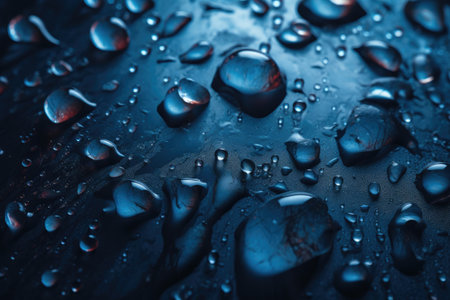 Blue surface covered in droplets of water. Generative AI