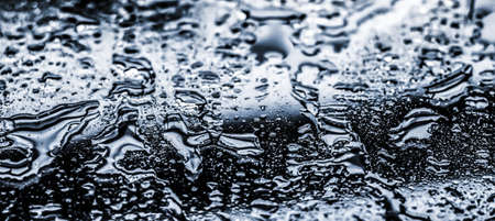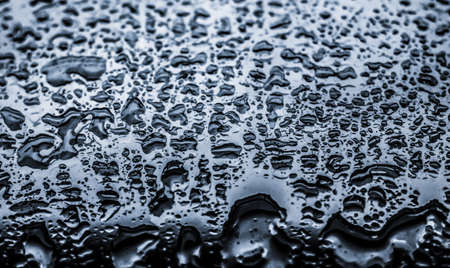 Liquid, wet and zen concept - Water texture abstract background, aqua drops on silver glass as science macro element, rainy weather and nature surface art backdrop for environmental brand design