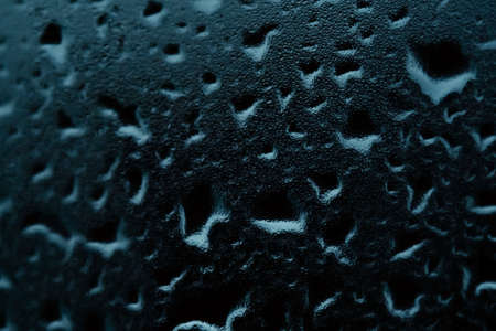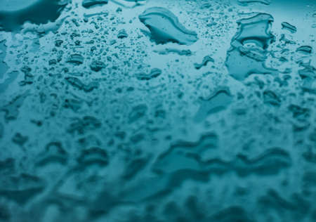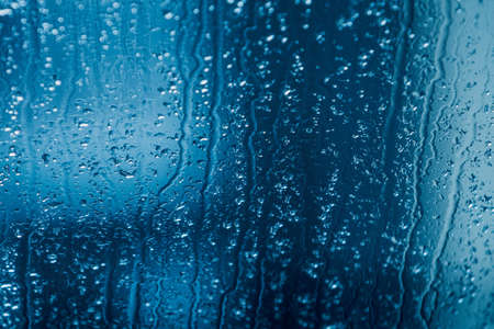 water droplets on glass. close-up. macro plan. blue background.