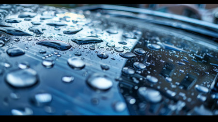 Raindrops on Car Windshield Capturing a Tranquil Moment in Nature. Concept of Calmness, Reflection, Weather, and Serene Beauty.. Copy space.