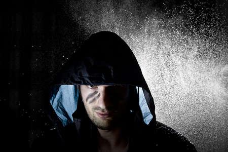 Brutal angry gang man lifestyle, serious handsome guy. Gang man, criminal guy.