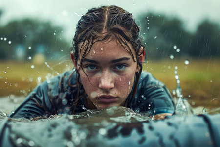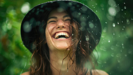 Playful Moments Under a Water Stream: A Portrait of a Young Woman Capturing Emotions and Mood