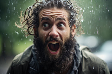 Face of wet funny man. Close-up portrait.
