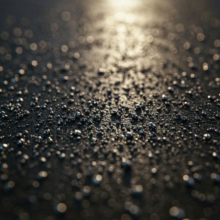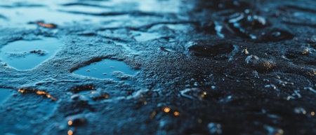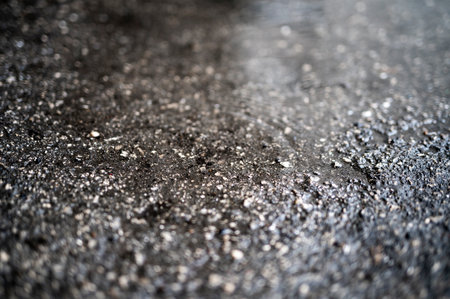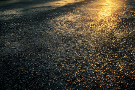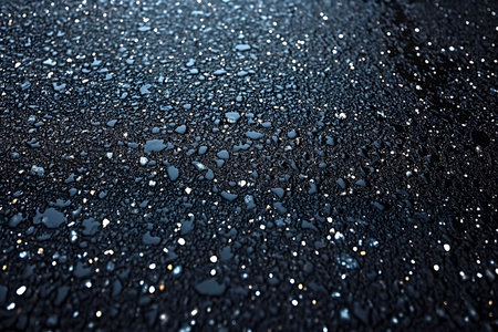 Close up rain wet asphalt micro sparkles dusk moody wallpaper background representing urban surface detail suitable for modern design