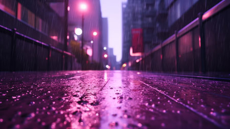 bright bokeh city lights reflecting on wet pavement, created with generative ai