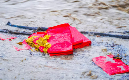Kathu District Phuket Island Thailand October 23, 2025 Extreme rainfall heavy typhoon monsoon flooding city streets with swimming garbage and objects in Patong Beach Phuket Thailand.