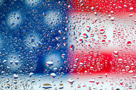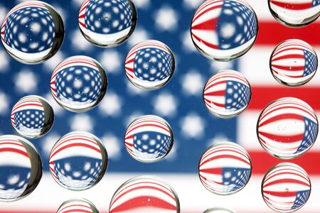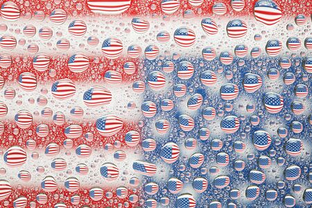 Abstract texture - Water drops on glass with USA flag background