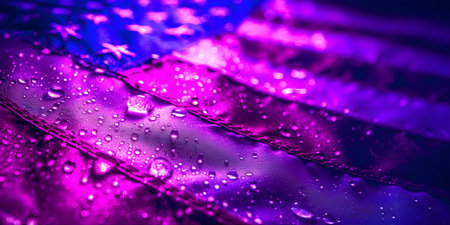 American flag reflected in water drops background