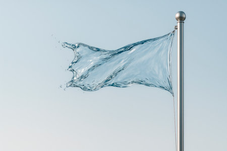 Flag made of water against the sky. Space for text