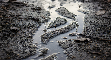 wet asphalt with raindrops forming intricate and delicate pattern, created with generative ai
