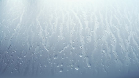 AI generated ultra realistic close up of water droplets on a smooth surface with soft blue reflections creating a calm quiet and mysterious mood with gentle blur and clean space for text