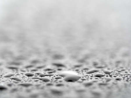 Water drops on gray glass surface, closeup