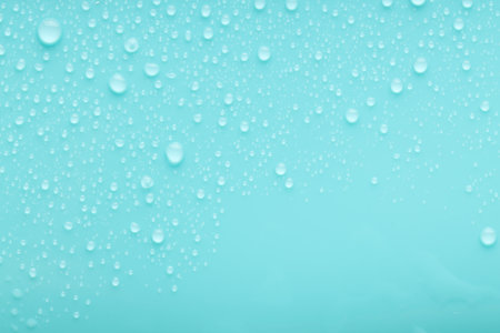 Background - water droplets on the surface of light blue color