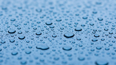 Blue surface covered in droplets of water. Generative AI