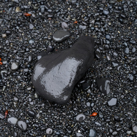 Black pebbles background texture. Close up grunge black sea stone, black and white style.