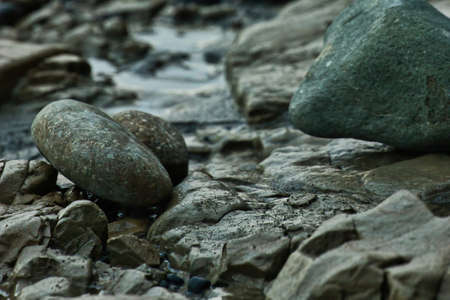 Stones on Ochrid Lake shore as nature background. Nature and travel concept.