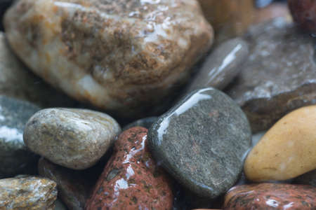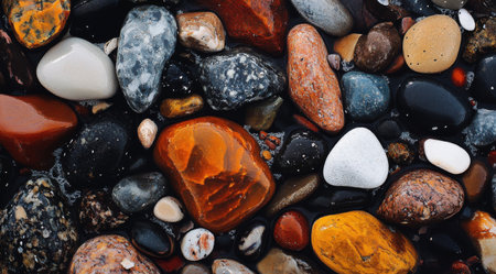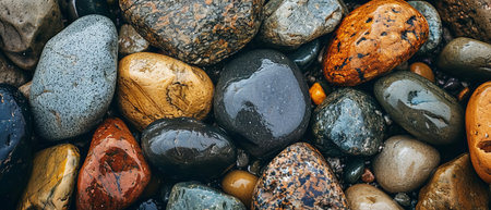 Colorful Wet Pebbles with Natural Patterns and Textures.