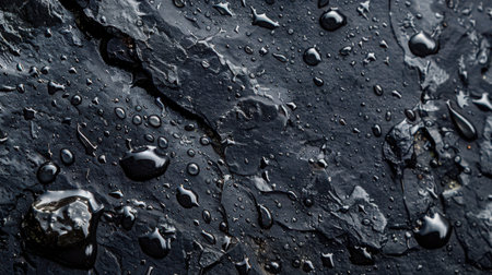 Black slate stone texture with raindrops, dark abstract background. Can be used as a background for text, or as a texture for 3D objects. Isolated on a black background.