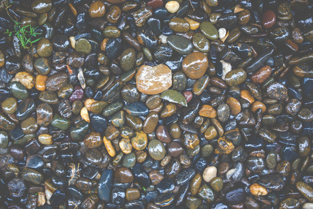 These are wet river pebbles and small round pebbles. Solid background. Top view