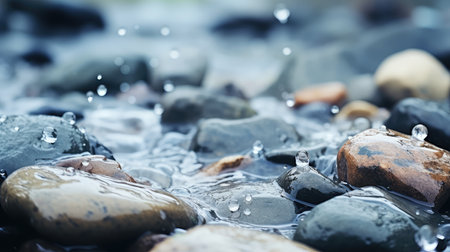 Imagine a mountain stream, alive with the rush of crystal-clear spring meltwater Smooth rocks glisten beneath the cascading flow, their surfaces polished by centuries of water The air is crisp and cool, and the vibrant green of surrounding foliage enhances the breathtaking beauty of this natural wonder AI Generative