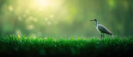 a heron gracefully perched atop tall grass, captured in the soft focus romanticism style by tang yau hoong. this stunning 32k uhd photograph, featured in national geographic, showcases the beauty of thai art with its bokeh effect and the enchanting golden light that bathes the scene. ai generated