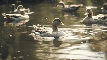 Mallard ducks swim in tranquil pond water generated by artificial intelligence
