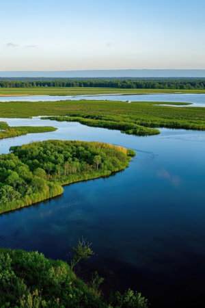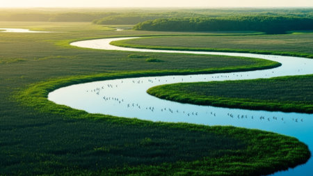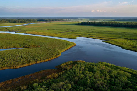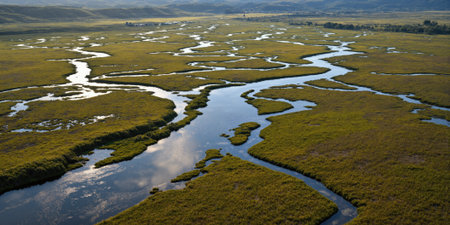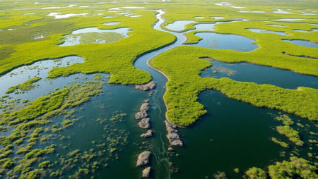 Winding rivers feed the green earth, a natural picture of wetland ecosystems