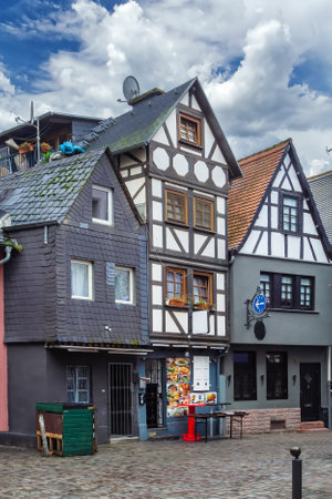 Linz, Germany - July 01, 2021, Street with traditional German houses in Linz, Germany
