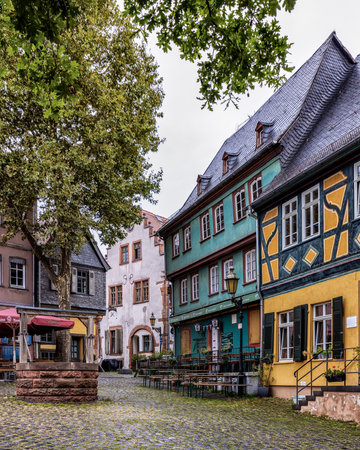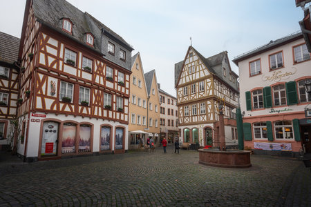 Old architecture houses in the center of Mainz city near Frankfurt am Main, Germany