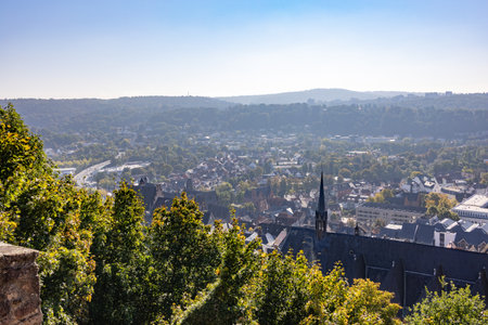 Landscape overview from above over Marburg in Hesse Germany
