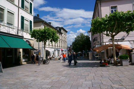 Bad Homburg, Germany - June 09, 2019: passers-by and pedestrians in the shopping area of Luisenstrasse in the city center with department stores and shops on June 09, 2019 in Bad Homburg.