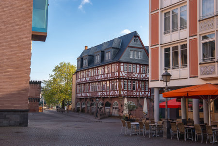 Traditional Half Timbered Building on a Cobblestone Street in Frankfurt