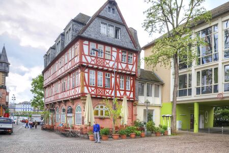 FRANKFURT AM MAIN, GERMANY - May 07,2014: City landscape. Ancient and modern office building is in historical part of city
