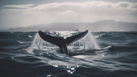 Generative AI : Aerial view of humpback whale tail above water surface near Baja California Sur Mexico