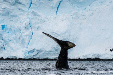 Close-up of the tail of a diving humpback whale -Megaptera novaeangliae. Image taken in the Graham passage, near Charlotte Bay, Antarctic Peninsula.