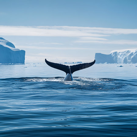 Majestic whale tail in the ocean, showcasing marine conservation efforts