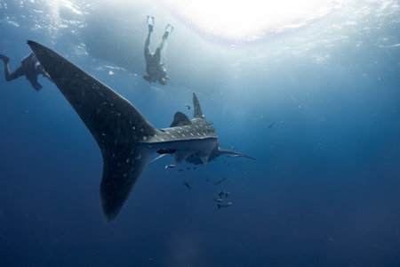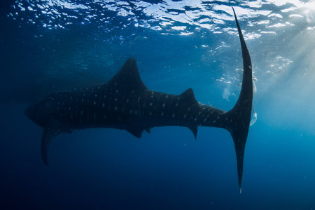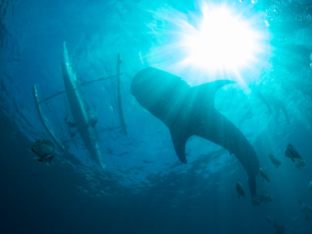 Silhouette of a huge Whale Shark in a tropical ocean