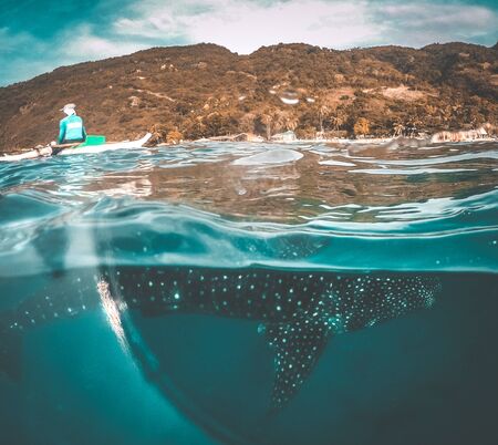 Whale shark watching off the scenic coast of Oslob, Cebu, Philippines, South East Asia