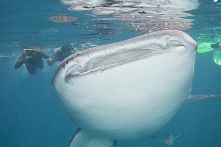 Whale shark and snorkeling people