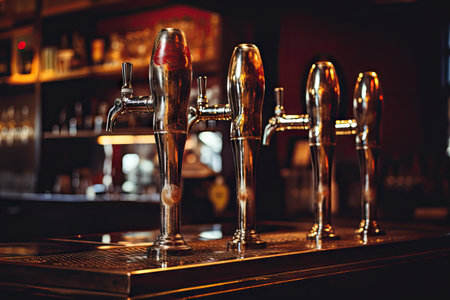 Beer Taps in Pub, Craft Beer Shop, Steel Shiny Taps Closeup, Generative AI Illustration