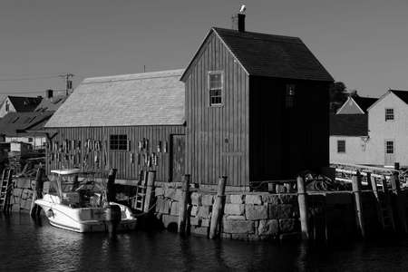 Fishing shack, boats, and Lobster Traps of Motif 1 on Bradley Wharf in Rockport, Massachusetts