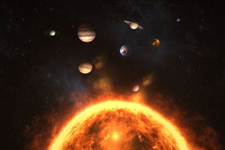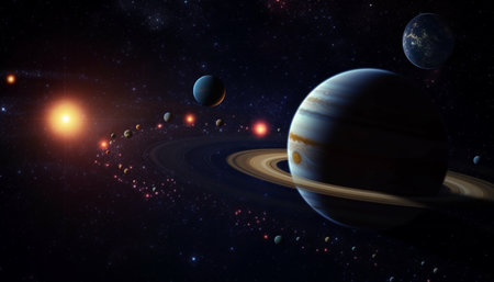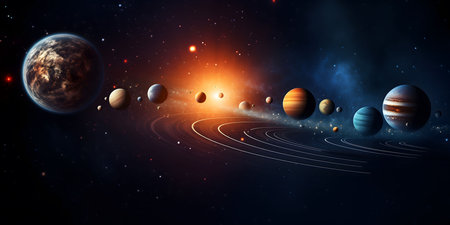 A captivating depiction of the solar system with planets orbiting a brilliant sun, showing the wonder and beauty of space.