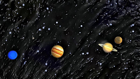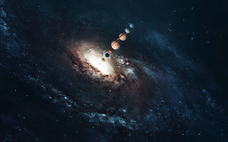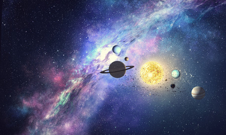 Conceptual image of the solar system. Planets drifts in space among of the solar system. Concept travel.