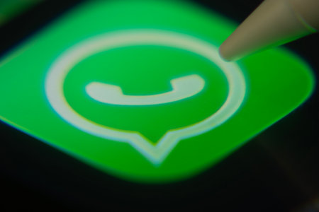 Dhaka, Bangladesh- 06 Dec 2025: Close-up of the WhatsApp app on a screen with a stylus pointing at it.