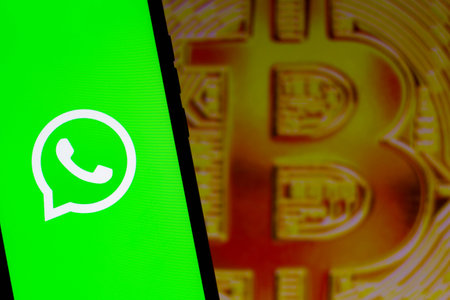 Dhaka, Bangladesh - 04 July 2025: The logo of the WhatsApp is displayed on a smartphone screen, and the website is visible on a computer screen in the background.